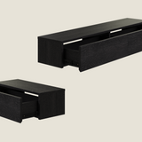 De OSLO consolekast in mat zwart brengt Scandinavische eenvoud samen met een modern zwevend ontwerp. Dankzij de strakke lijnen en het compacte formaat past dit meubel naadloos in elke ruimte. Het zwevende design zorgt voor een luchtige uitstraling en maakt schoonmaken eenvoudig.